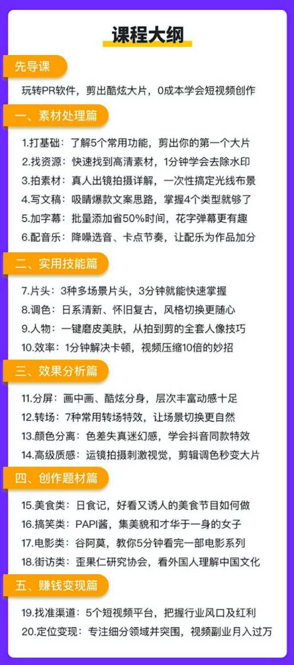 图穷设计网 » 小白速成PR软件实操:20节短视频赚钱课,教你月入过万