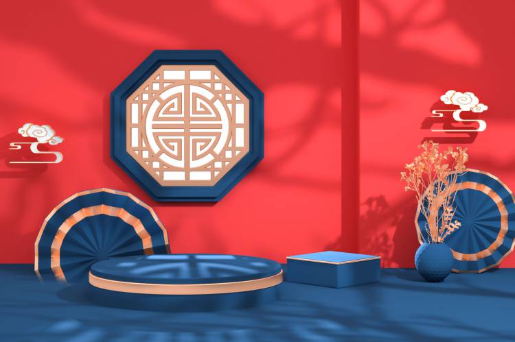刚购的C4D国潮中国风场景模型,画面非常奈斯!