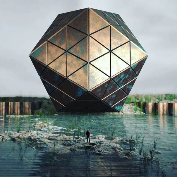 C4D水边的菱形金属模型工程创意场景3D模型素材