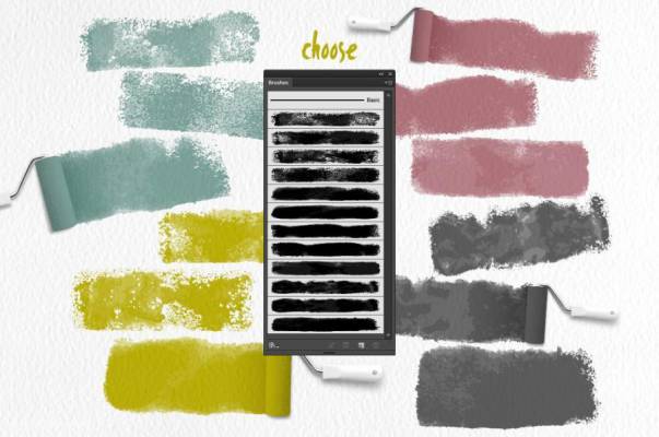 水墨滚筒绘画笔刷,您可以随意变换笔刷的颜色,使您的艺术设计色彩丰富,充满趣味性,实现自然逼真