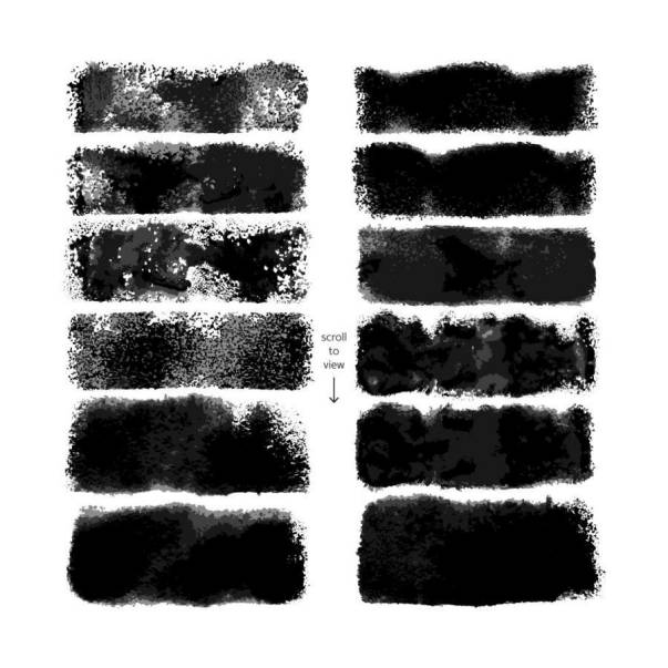 真实水彩油漆滚筒艺术绘画效果的Illustrator笔刷素材,总共有12个具有不同粗细、力度和纹理变化效果的