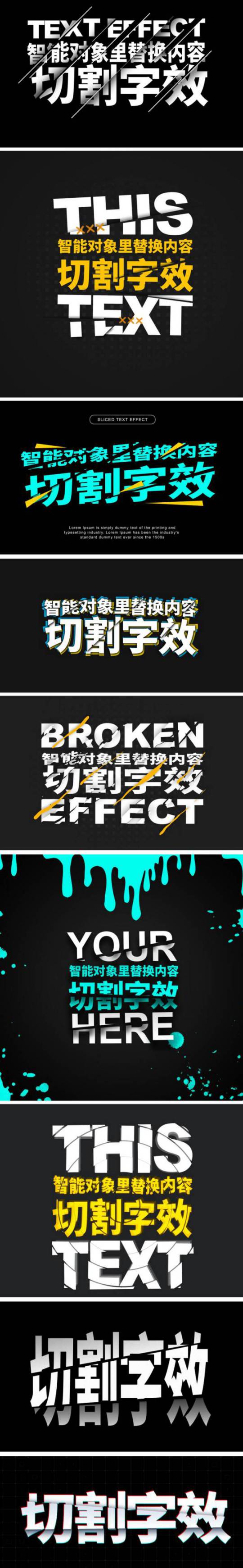 文字效果-切割文字效果样机动感扭曲特效字体logo海报设计效果psd素材