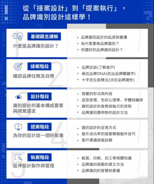 这堂课主要著重于「品牌识别设计」中的步骤流程及案例分享的学习,软体教学的部分比例较少,