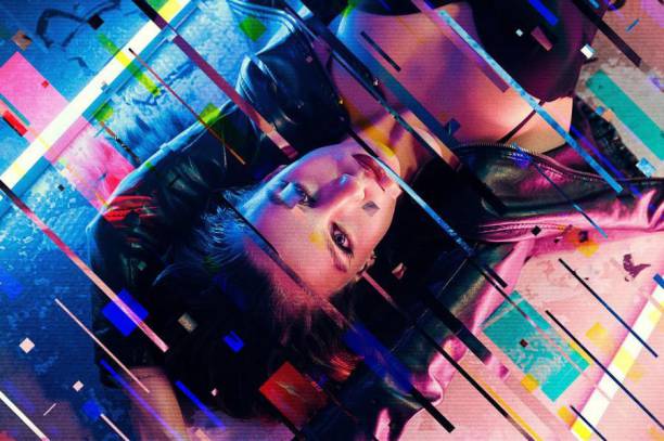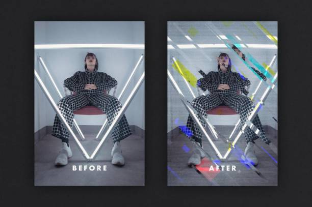 将照片处理成斜条纹故障艺术效果的psd模板,向您呈现由不同几何形状组成的故障效果,以随机但同时非常精确