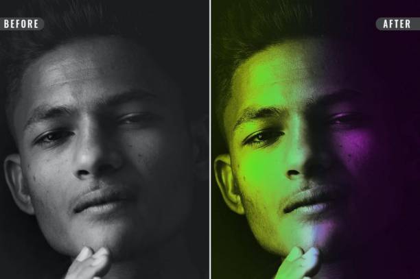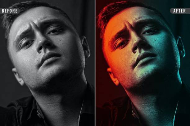 将照片处理成双色光照效果的psd滤镜模板,建议对照片(1000 像素 - 3000 像素)分辨率使用操作以获得最佳效果。