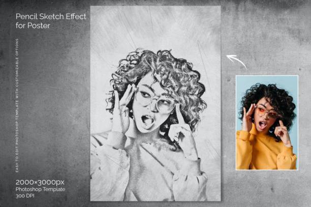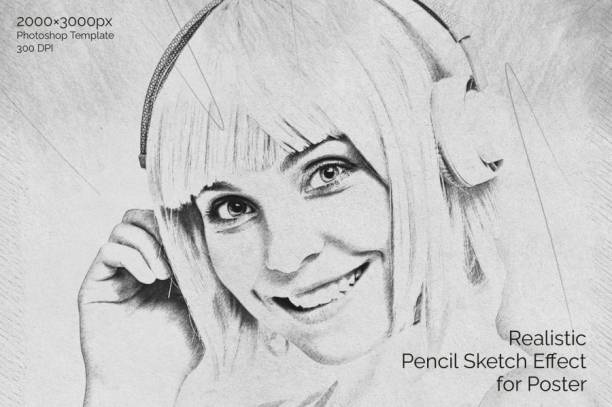 铅笔素描效果逼真。模板尺寸为2000×3000 px,300 dpi。操作简单,适用于 PS CC -PS CC2023版本。