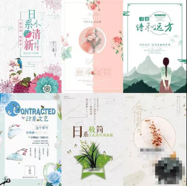 PSD模板-30款小清新唯美淡雅日系海报PS模板