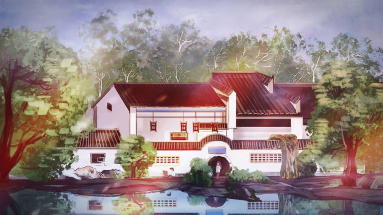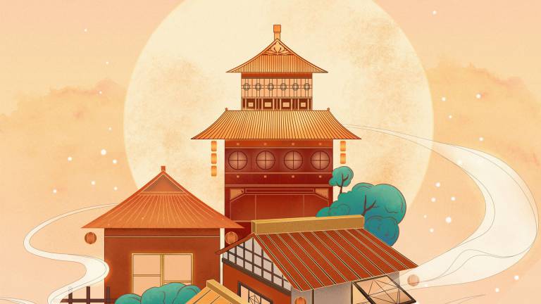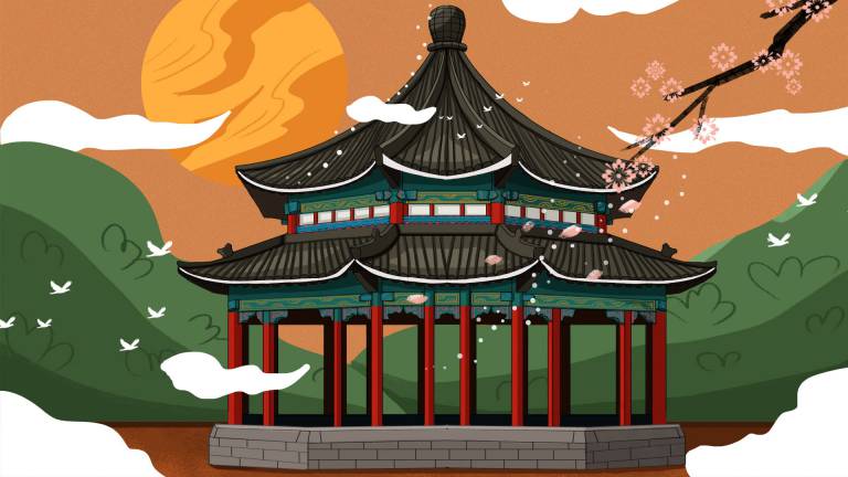 图穷设计网 » PSD模板-中国风中式古典国潮手绘风景古建筑鱼龙海报插画PSD模板