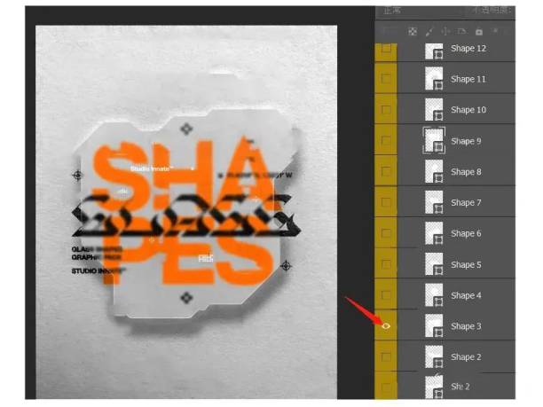 如果你想换个别的效果,可以找到这个位置,点击图层前面的小眼睛切换样式