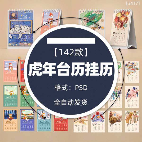PSD模板-142款2022年虎年公司企业日历挂历台历模板