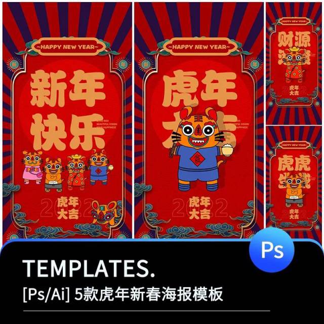 图穷设计网 » PSD模板-2022年国潮中国风虎年新年春节除夕海报