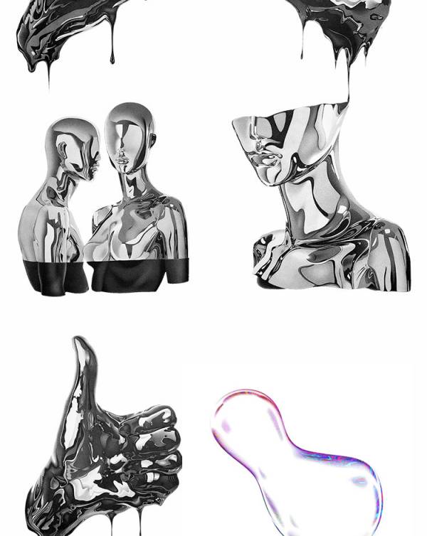图穷设计网 » PNG素材-潮流金属人元素+高级炫彩透明泡泡