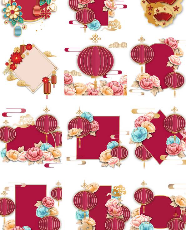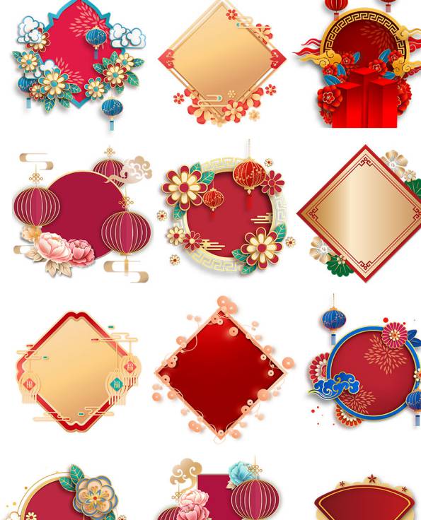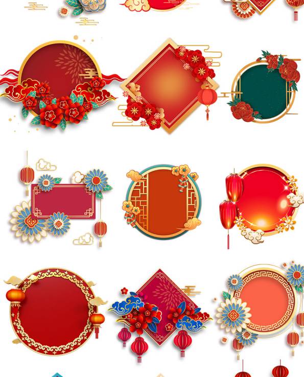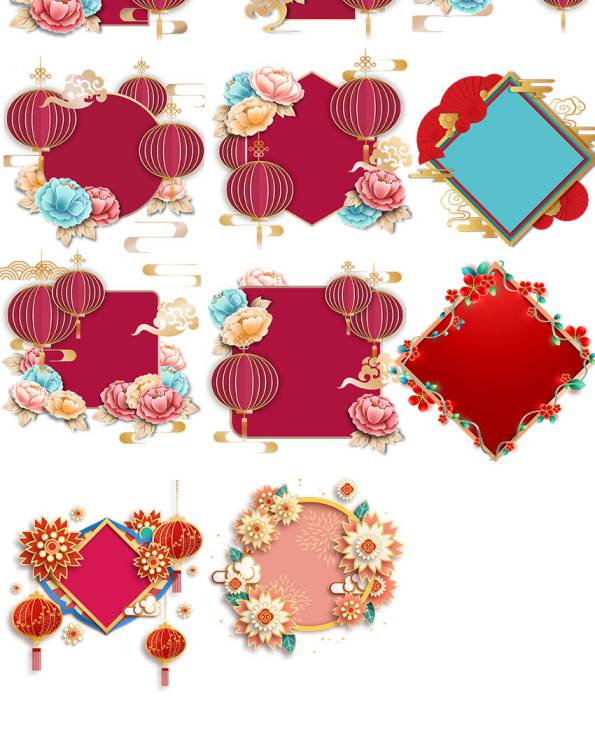 PNG素材-花朵剪纸立体边框图案装饰元素png素材