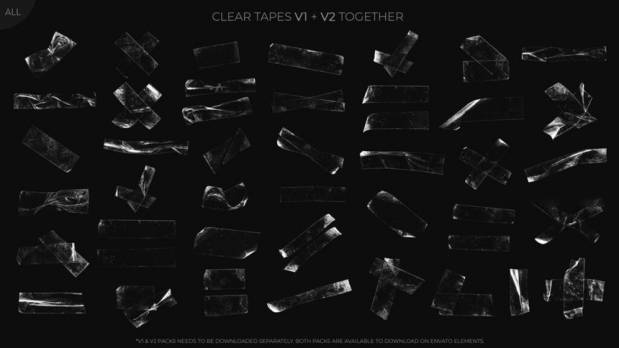 透明塑料褶皱胶带贴纸PNG免抠图片设计素材,总共有20个透明胶带图片,每个胶带都有其独特的纹理,并且被精确