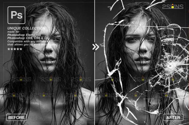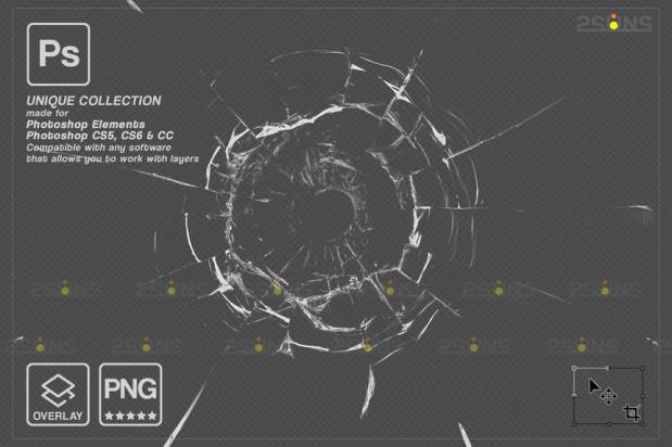 各种设计软件打开,用于叠加在照片上,展示玻璃破碎效果。