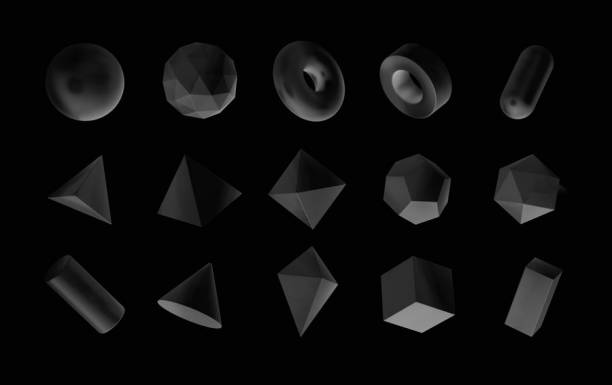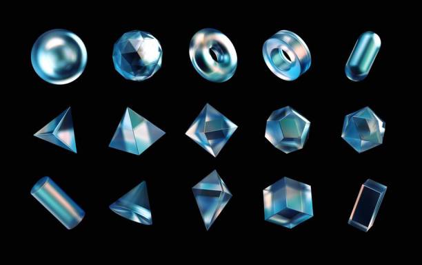 水晶玻璃质感的立体几何多面体图形素材,不同的3d立体几何多面体,包含有:圆球、正方体、长方体、圆锥体、