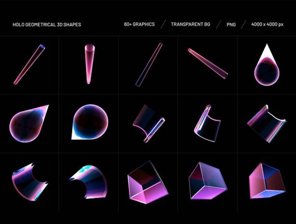 PNG素材-100款全息效果3D几何形状PNG素材合集