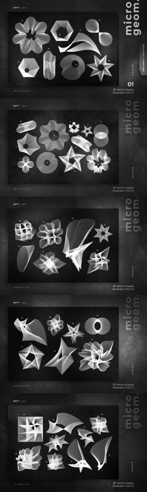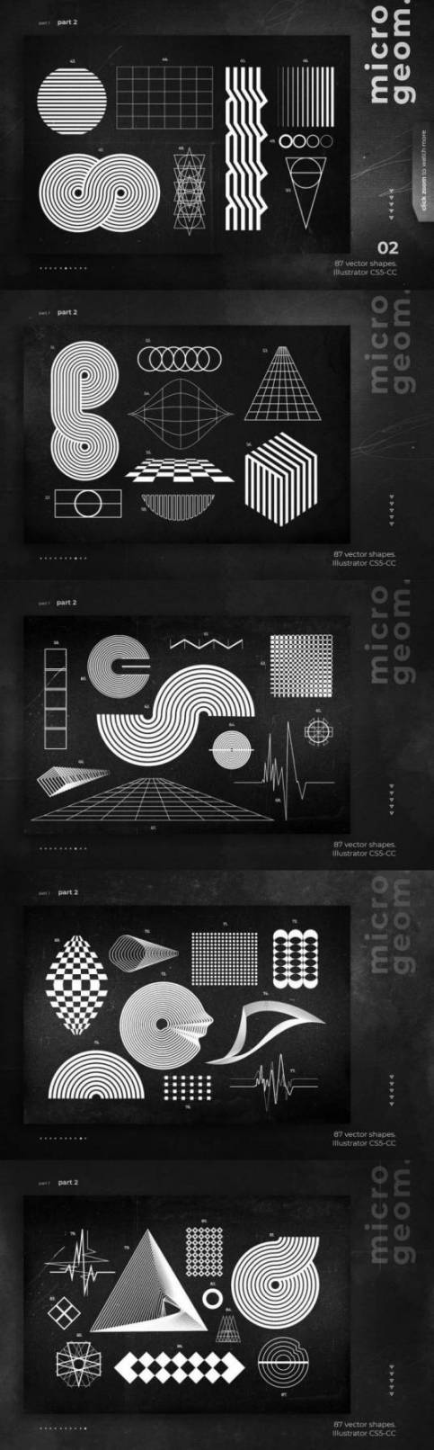 素材包内含有:87种矢量形状(黑色和白色版本),有ai、psd、png(5000x5000px,300dpi);