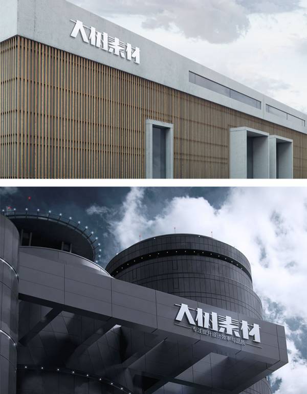 图穷设计网 » 样机模板-公司企业标志LOGO展示效果图建筑墙面形象PSD样机智能贴图素材