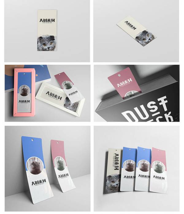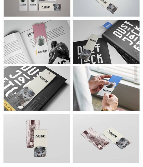 样机模板-书签吊牌书籍智能贴图文创样机VI模板标签展示效果设计素材PSD