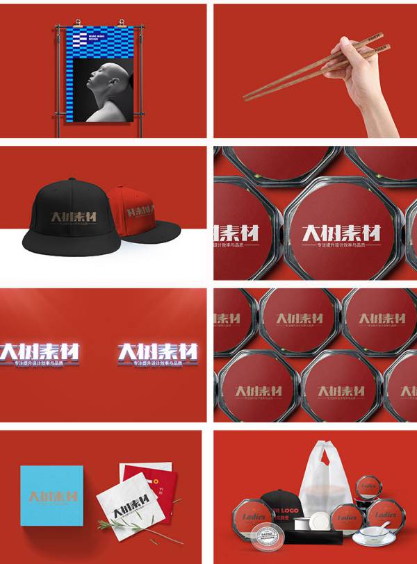 样机模板-餐饮中餐火锅餐厅VI设计提案展示场景贴图PSD样机效果图模板素材