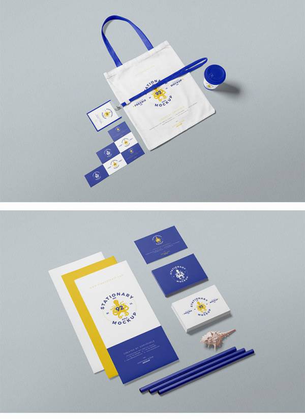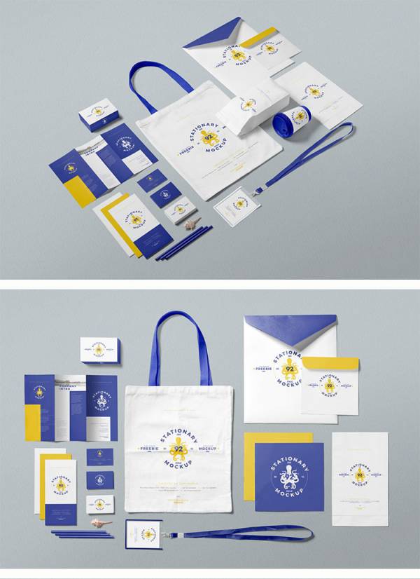 图穷设计网 » 样机模板-蓝黄白公司商业文具办公文创VI展示样机PSD智能贴图设计模板素材