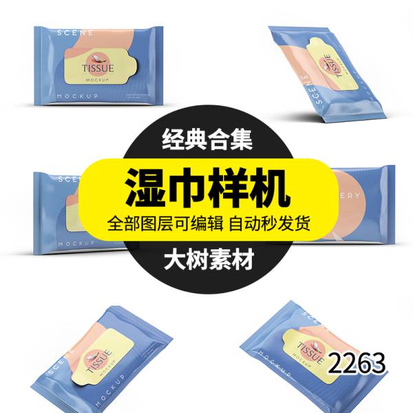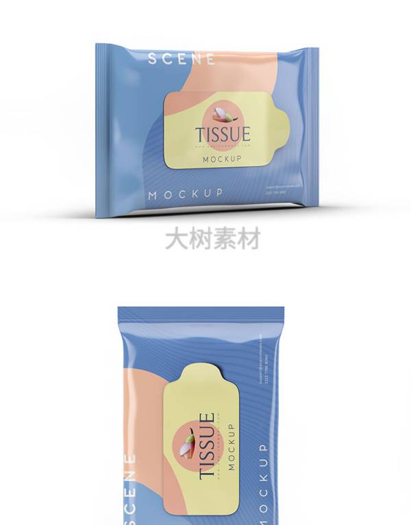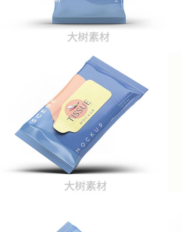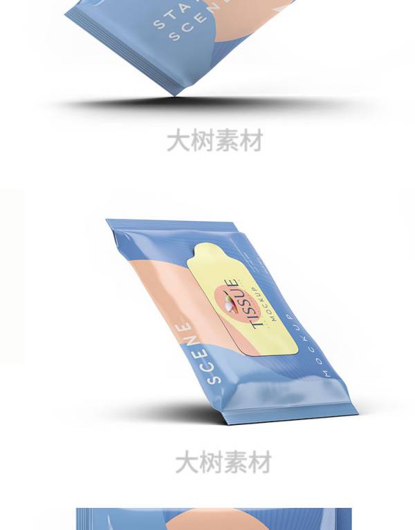 样机模板-湿巾餐巾纸巾包装袋智能贴图样机VI展示效果图psd设计模板素材