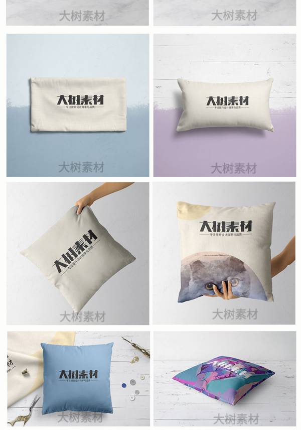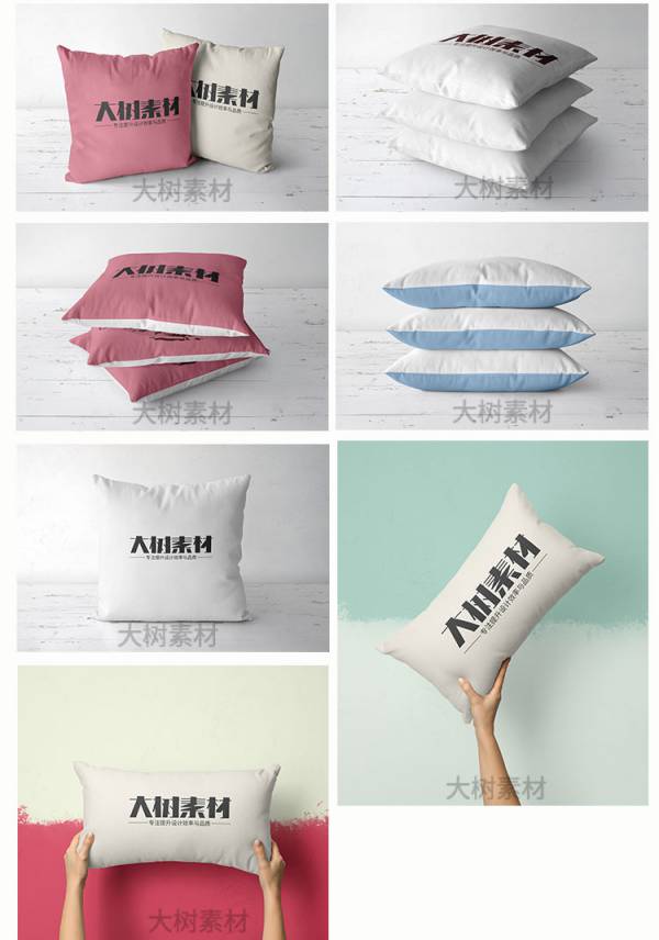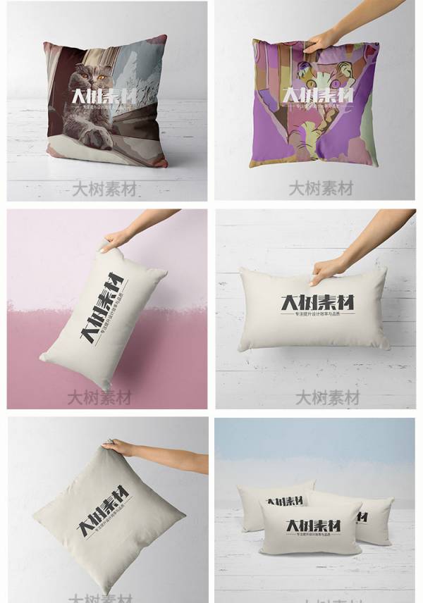 样机模板-方形抱枕座垫智能贴图样机枕头靠垫标志展示效果PSD模板设计素材