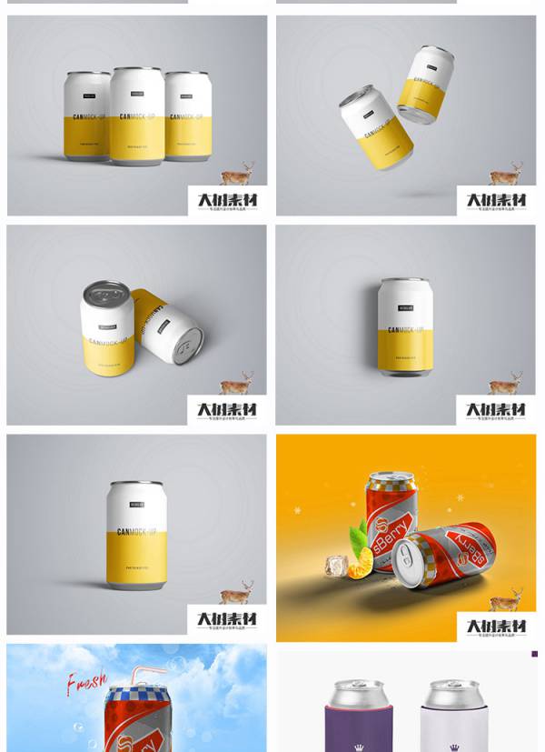 图穷设计网 » 样机模板-易拉罐饮料饮品铁罐啤酒包装设计VI智能贴图展示样机PSD模板素材