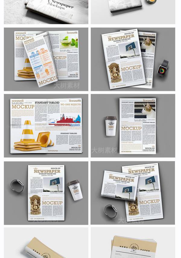 样机模板-报纸刊物设计展示PS样机效果图VI智能贴图mockups模板PSD素材