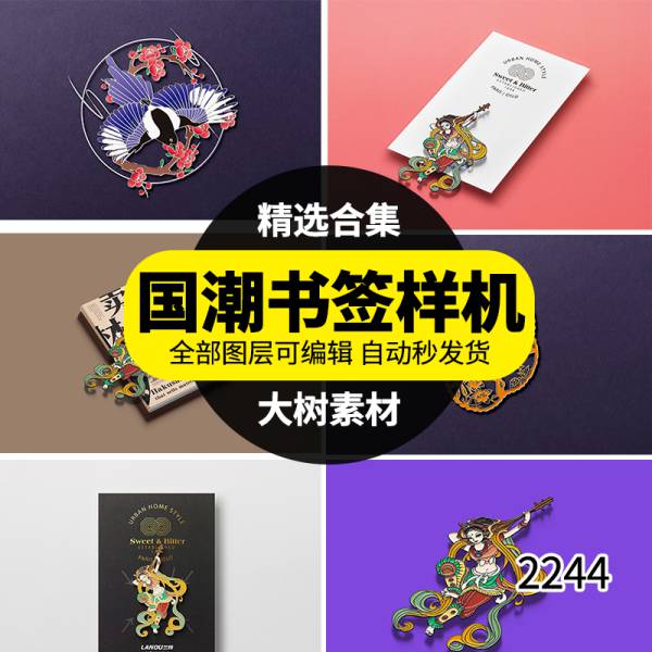 样机模板-国潮风金属书签样机VI文创用品智能效果图贴图psd文件模版素材