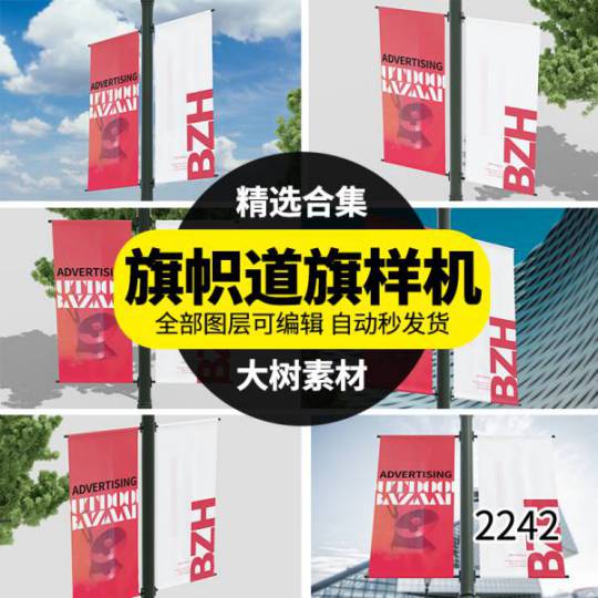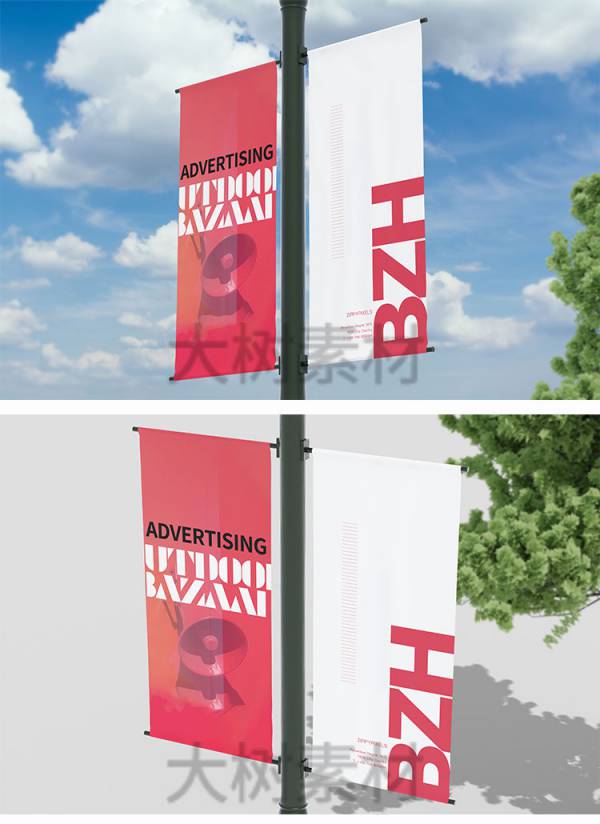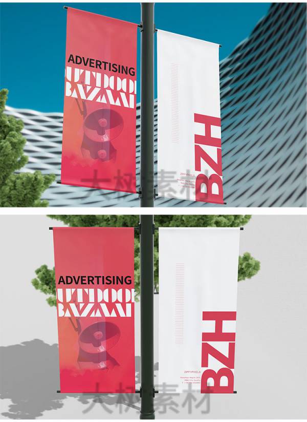 样机模板-横幅路旗道旗旗子场景VI设计效果展示PSD样机智能贴图模板素材