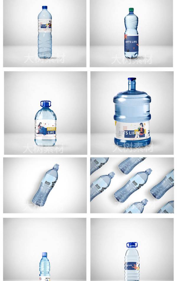 图穷设计网 » 样机模板-矿泉水纯净水饮料塑料瓶桶装水效果图贴图vi样机psd设计素材模板