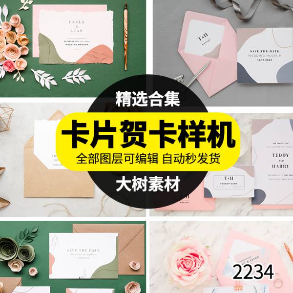 样机模板-信函卡片贺卡婚礼花朵女性智能贴图VI样机提案PSD设计模板素材