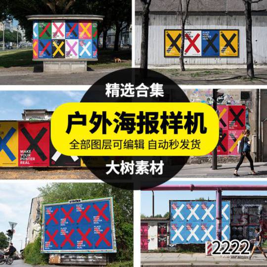 图穷设计网 » 样机模板-户外城市街头墙面海报广告褶皱样机场景展示PSD智能贴图模板素材