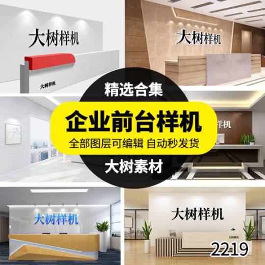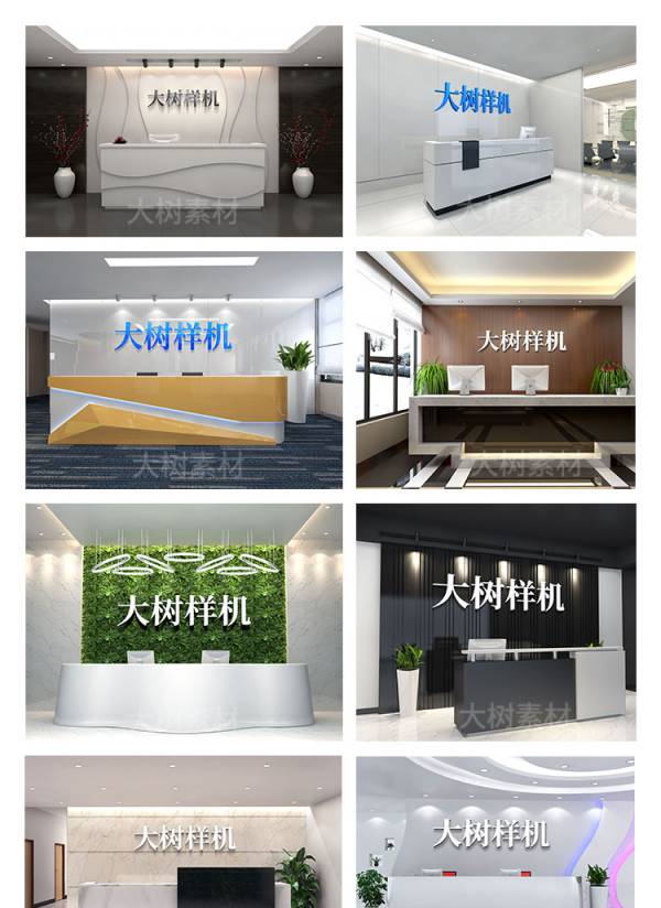 样机模板-公司企业前台形象墙LOGO标志效果图VI智能贴图样机PSD设计模板