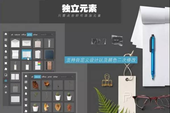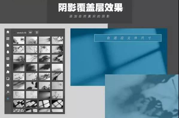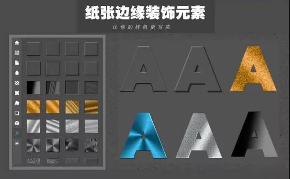 插件内置了上百款样机元素,背景,纹理,褶皱,铝箔,