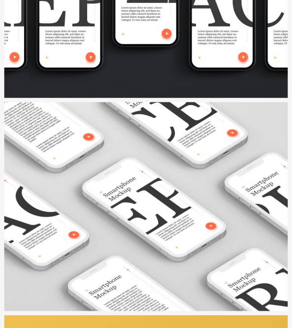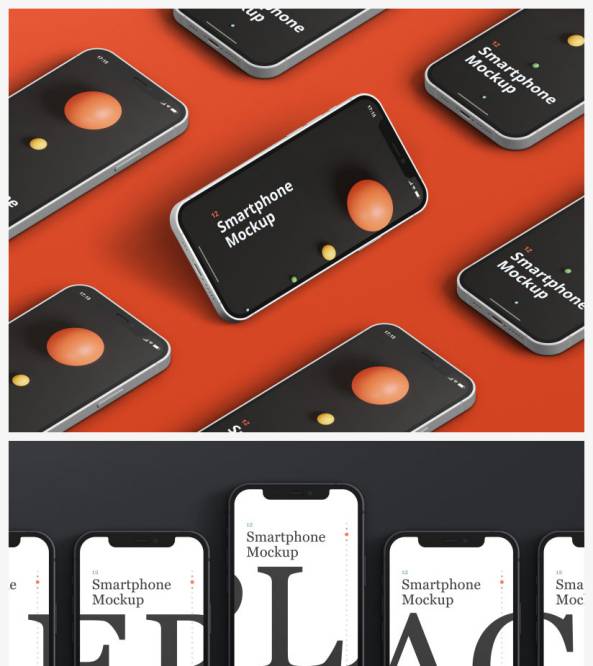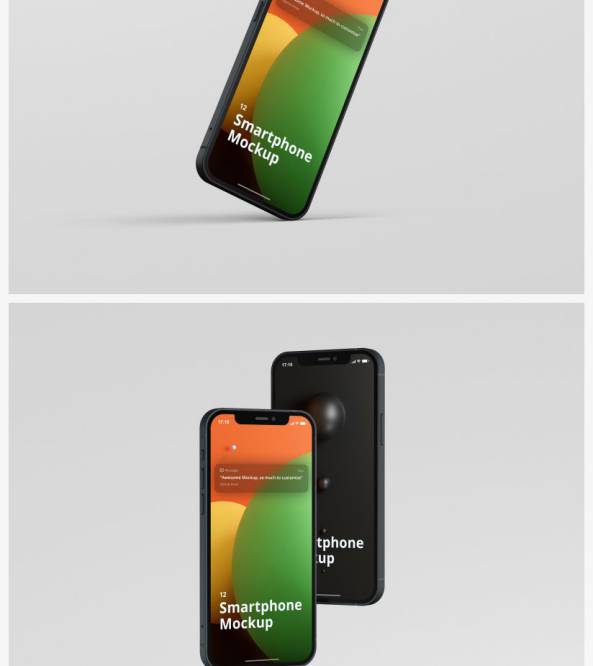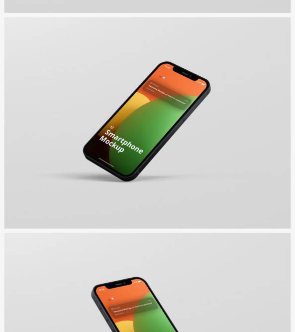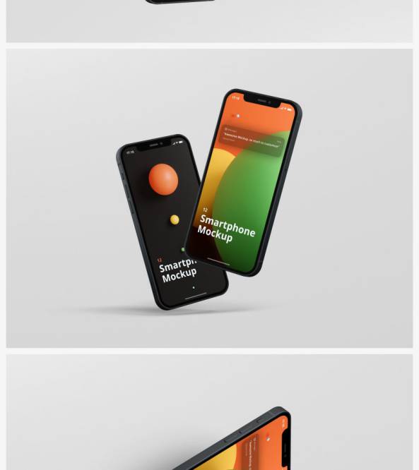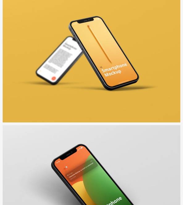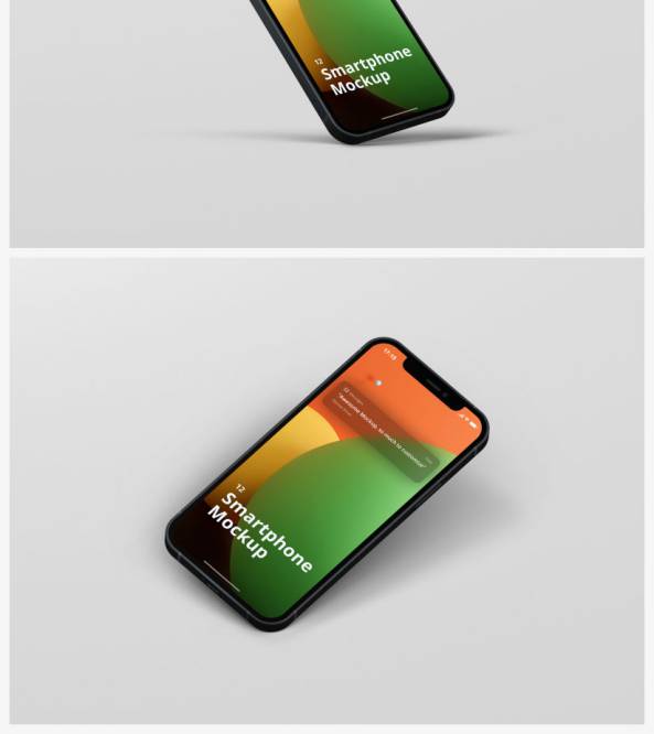样机模板-iPhone12手机APP效果图多角度屏幕UI展示PSD智能贴图样机素材模板