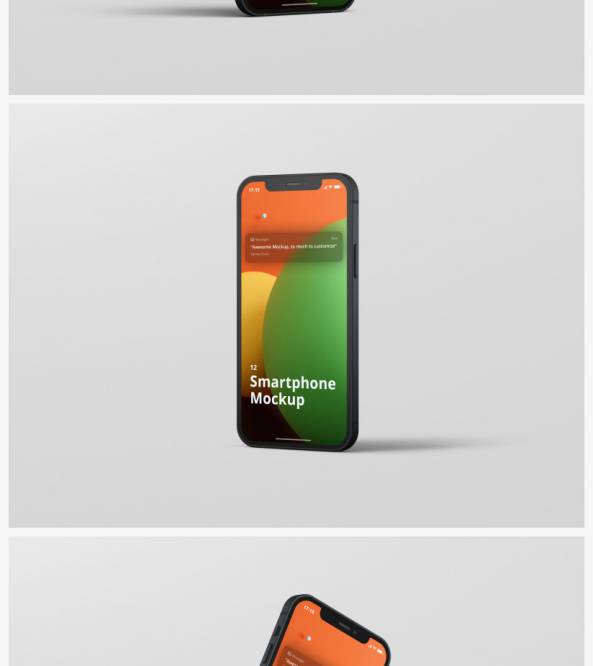 图穷设计网 » 样机模板-iPhone12手机APP效果图多角度屏幕UI展示PSD智能贴图样机素材模板