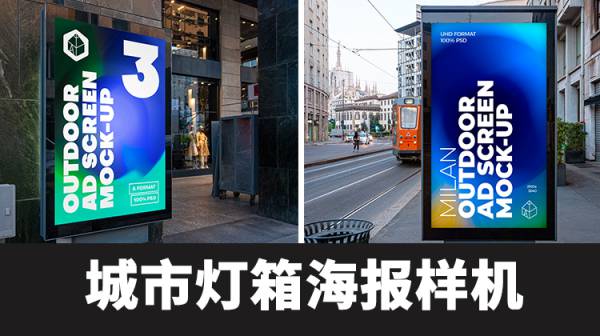 样机模板-国外城市户外车站灯箱广告牌展示效果PSD分层样机模板
