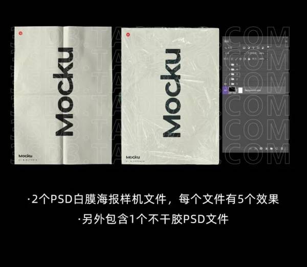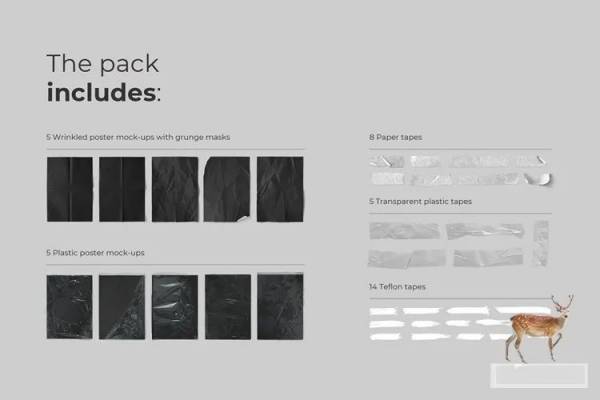 样机模板-折痕塑料薄膜褶皱肌理PSD智能贴图样机