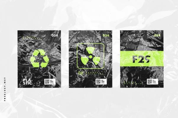 置换纹理、9张jpg格式的塑料纹理、9个海报样机、9张海报设计预览图。