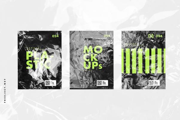 样机模板-褶皱的黑色塑料纹理背景图和样机模板素材