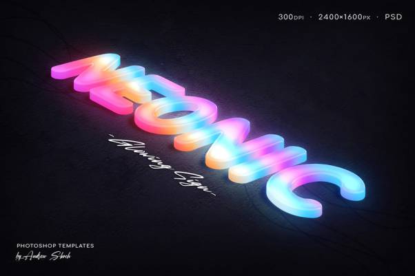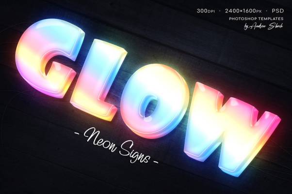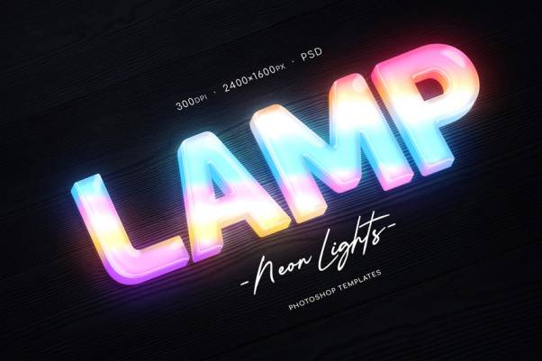 霓虹灯为彩色渐变色,具有强烈的立体感。素材为psd分层格式,尺寸为2400×1600px,300dpi。
