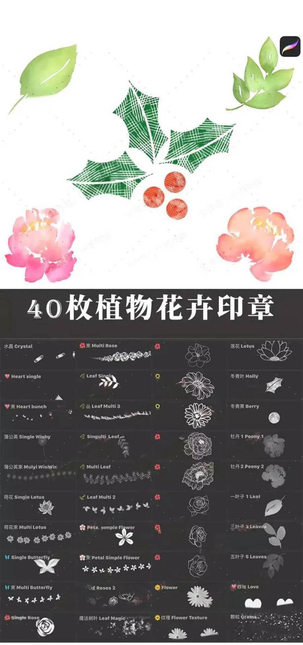 简约版植物花卉笔刷40款