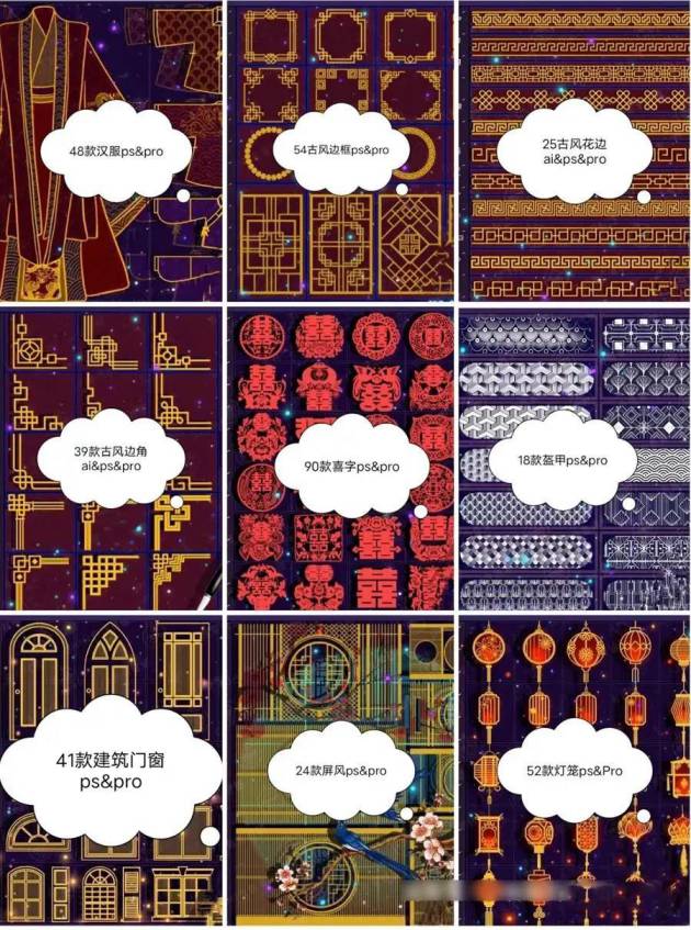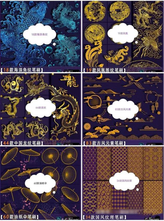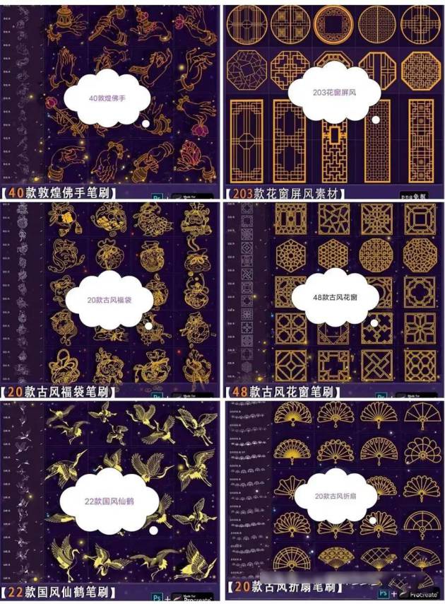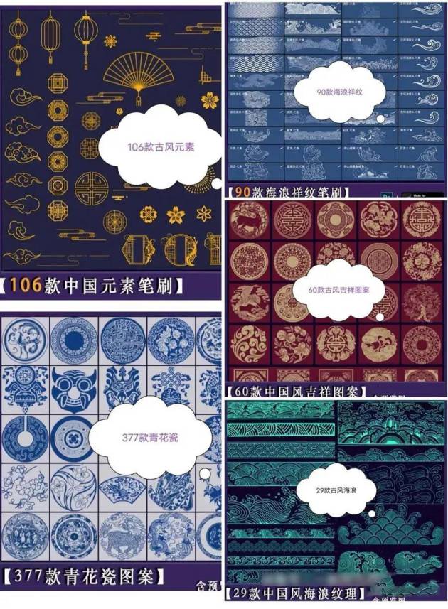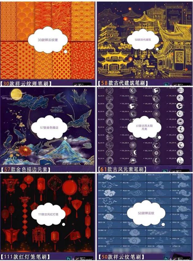 一共60套中国古风笔刷素材合集