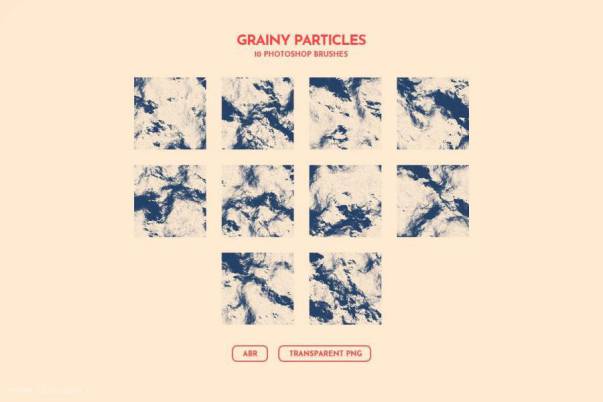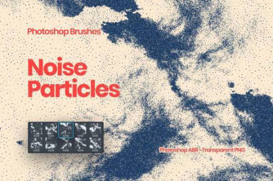 抽象粒状粒子的Photoshop噪点笔刷素材,总共有10 种不同的动态噪声粒子 Photoshop 画笔,