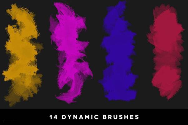笔刷包含有:16个大画笔、43个长条画笔、18个圆形画笔、11个小画笔、14个动感画笔等。