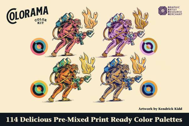复古风格的Photoshop调色板工具素材包,包含114个预混合即用型 Photoshop 调色板,还方便地编译在