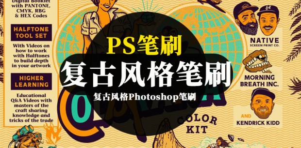 PS笔刷-复古风格Photoshop笔刷和调色板工具素材包